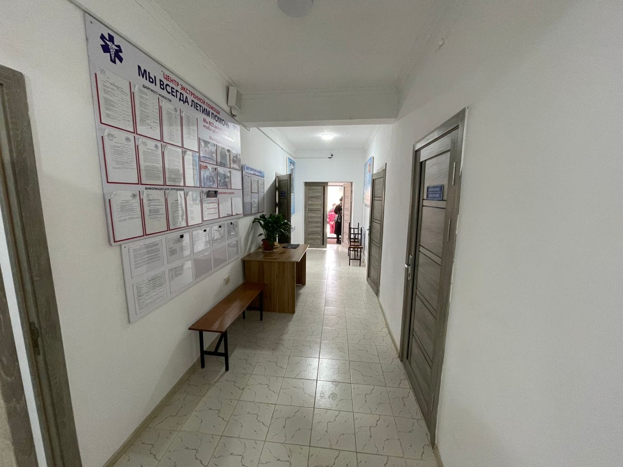 Жер тилкесинин аянты 0.09 га, имараттын аянты 140 чарчы метр, имаратта фельдшердик пункт, жетекчинин кабинети, дары-дармектер үчүн кампа, диспетчердик пункт, процедуралык жана техникалык жайлар жайгашкан.