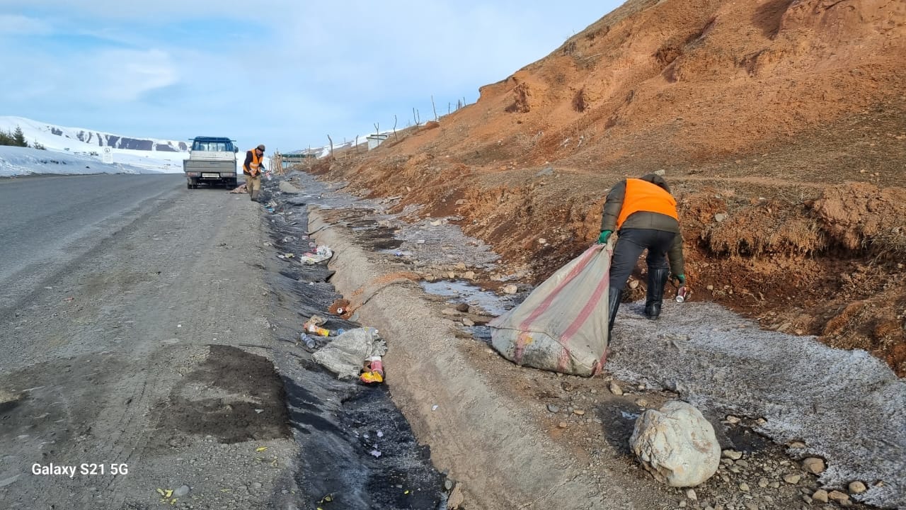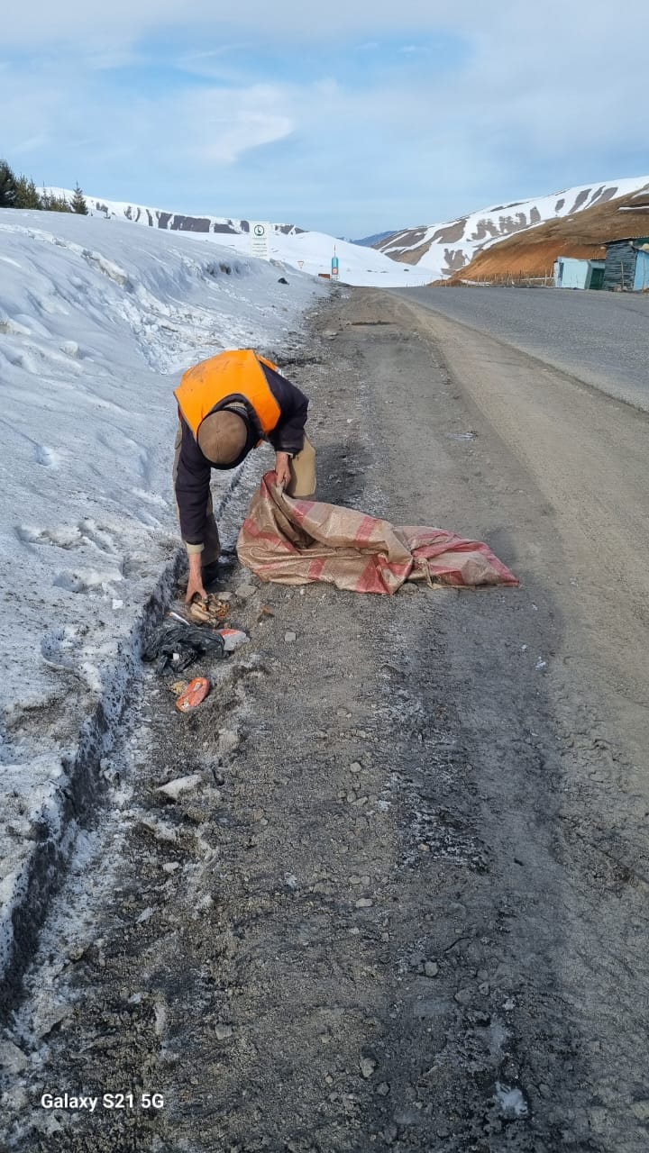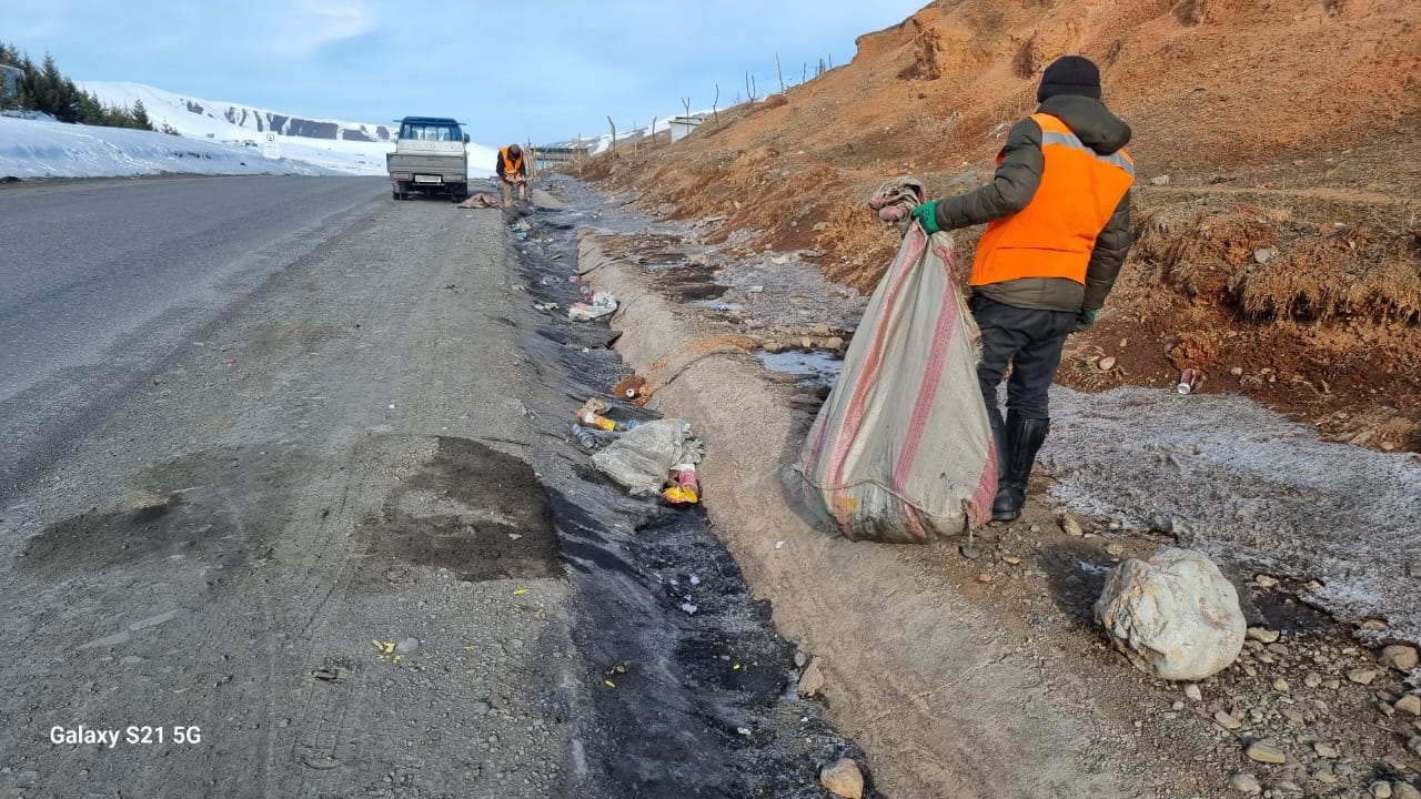 Анда жолдун 37-80-чакырым аралыгында ыргытылган таштандылар жана башка тиричилик калдыктары чогултулду.
