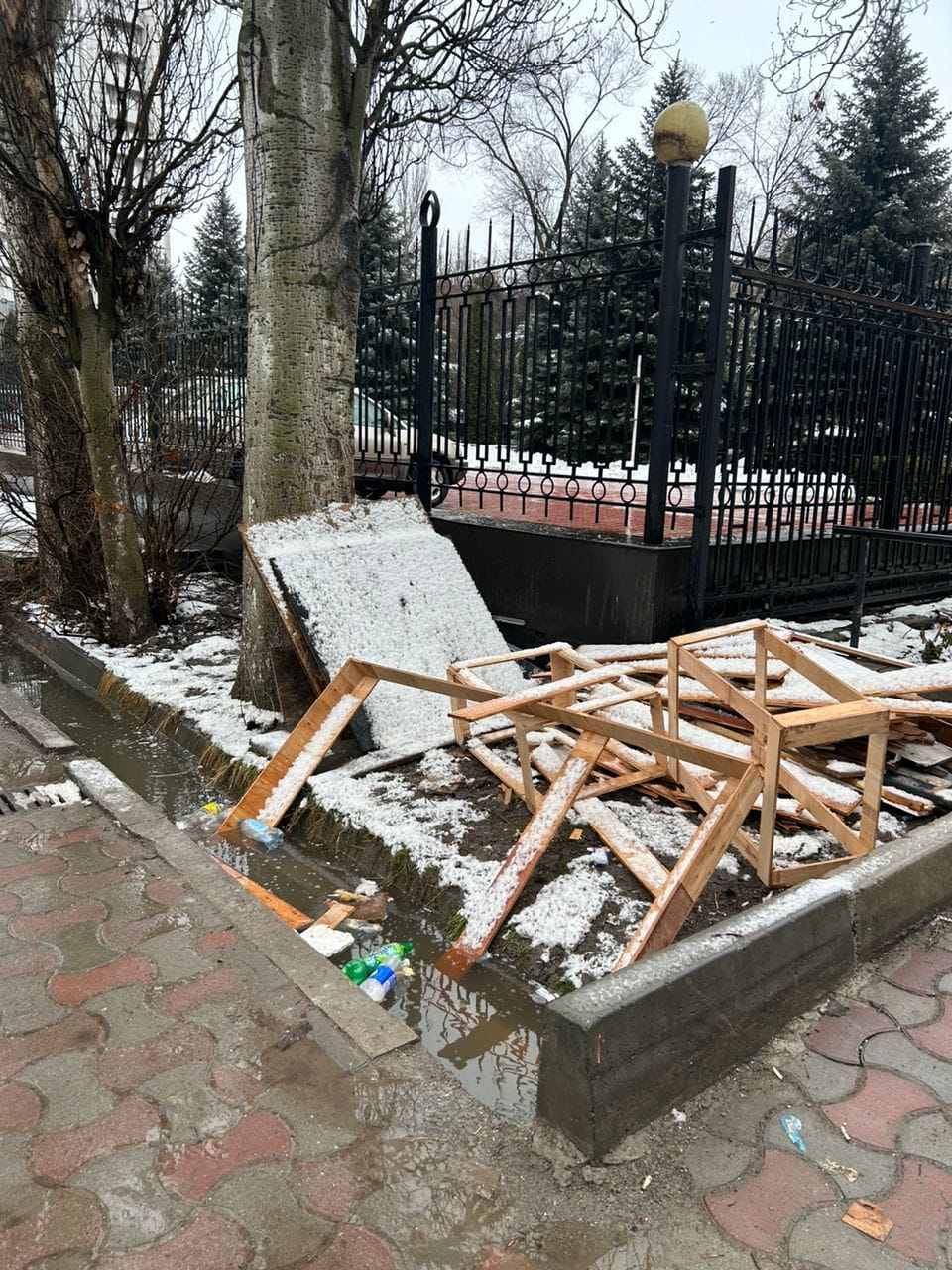 Ушул эле берененин негизинде Безымянная көчөсү, 4/4 дарегиндеги «Фиш Ритейл Сервис» ЖЧКсына жол бетин бузуп, булгагандыгы үчүн 17 миң сомго протокол түзүлдү.