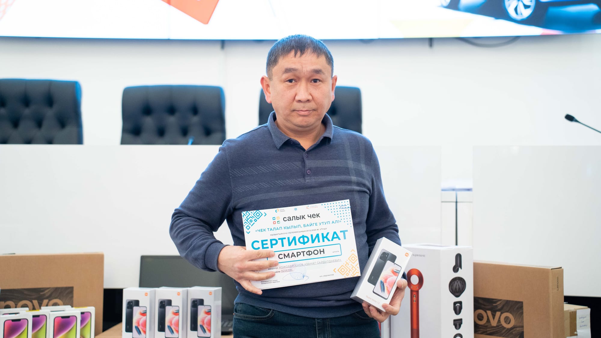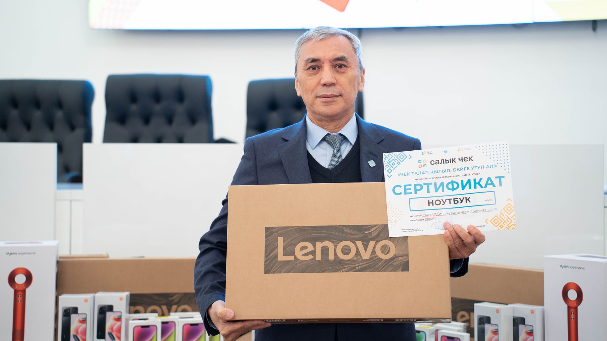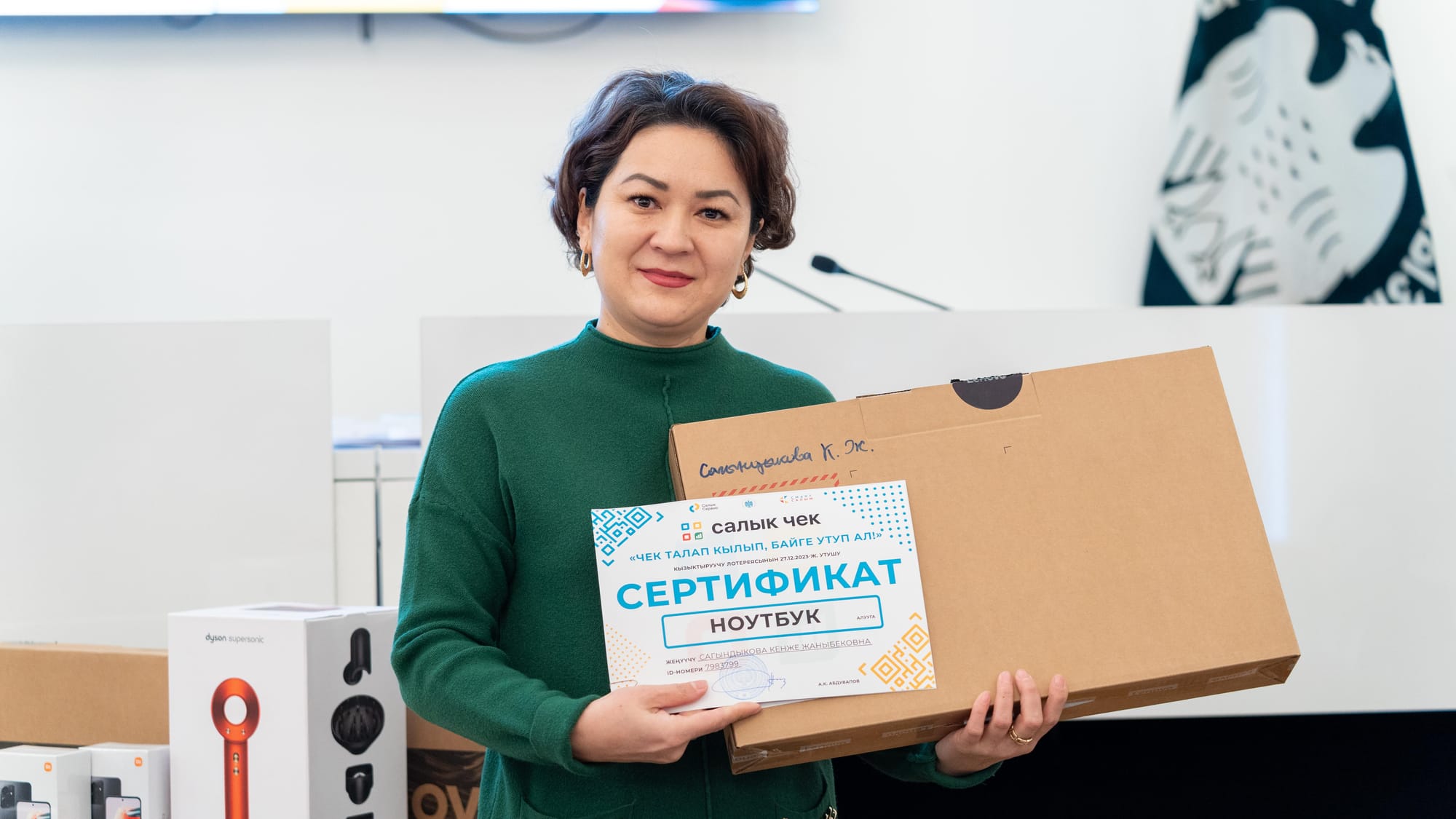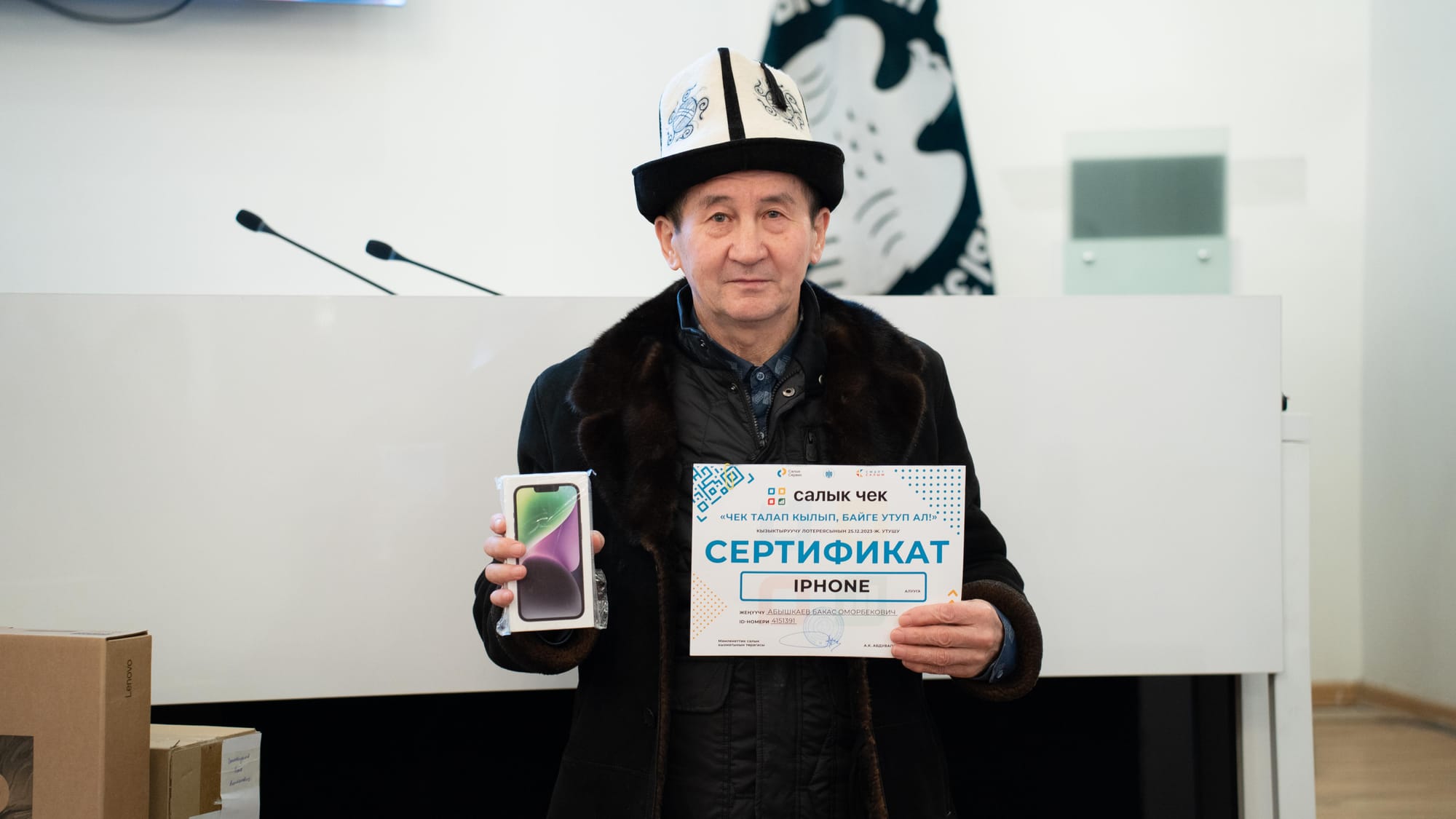 Салык кызматы 2023-жылы 25-декабрдан 30-декабрга чейин өткөрүлгөн «Чек талап кылып, байге утуп ал!» кызыктыруучу лотереясынын 2-этабынын жеңүүчүлөрүнө байгелерин тапшырууну баштады. Бул тууралуу мекеменин маалымат кызматы билдирди.