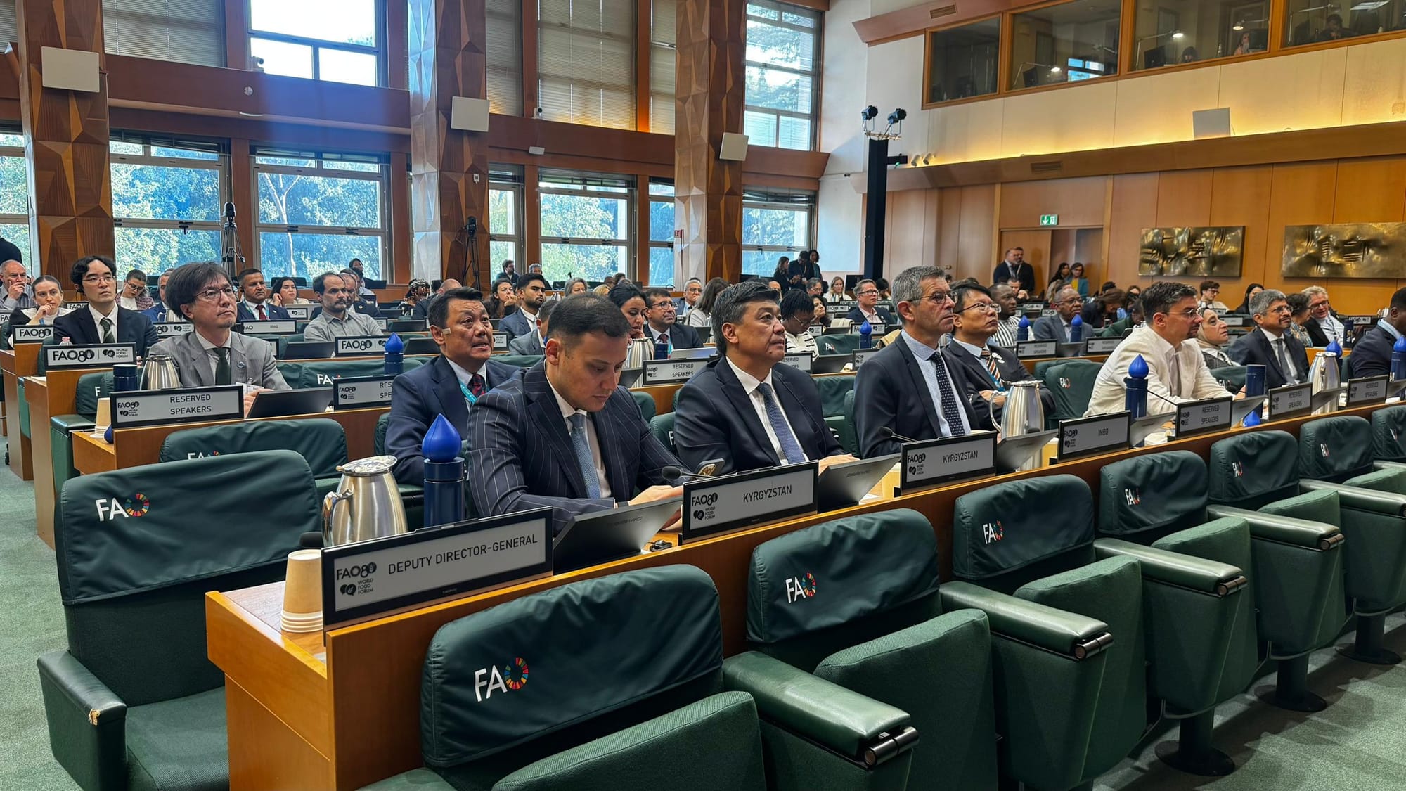 Форум БУУнун Азык-түлүк жана айыл чарба уюмунун (ФАО) штаб-квартирасында өтүп жатат. Министр өз баяндамасында суунун маанисин, климаттын өзгөрүшүнүн жана калктын өсүшүнүн кесепеттерин, ошондой эле Кыргызстандагы суу ресурстары менен байланышкан негизги көйгөйлөрдү жана мүмкүнчүлүктөрдү белгиледи.