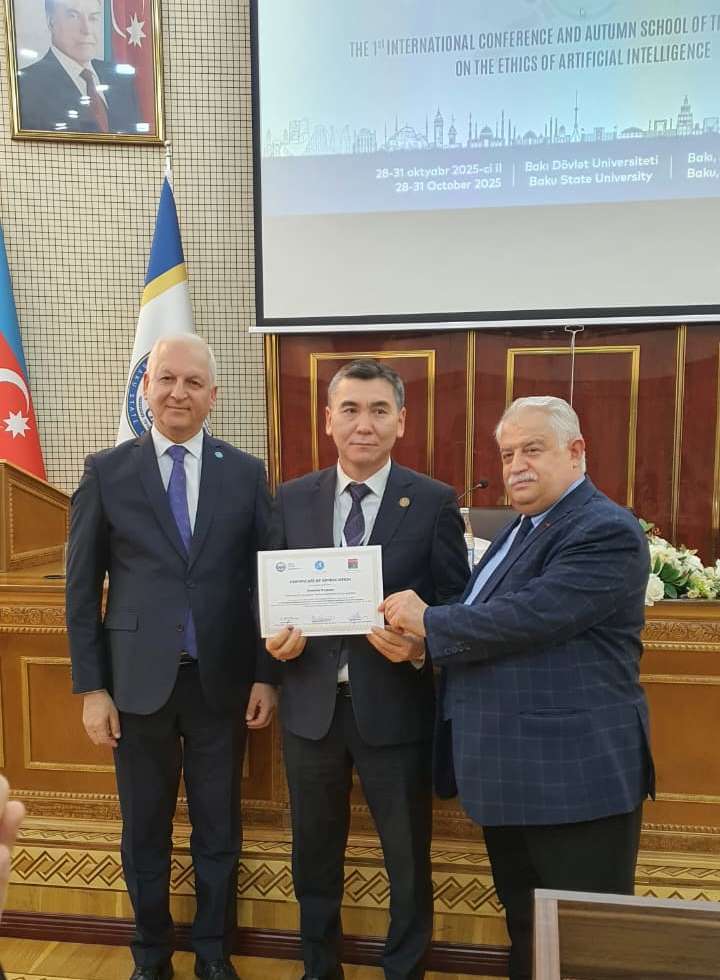 Компьютердик технологиялар жана жасалма интеллект институтунун директору Амантур Рыспаев Жасалма интеллекттин (ЖИ) этикасы боюнча Баку мамлекеттик университетинде болуп өткөн I Эл аралык конференцияга катышты. Анын жүрүшүндө ал “КРда жасалма интеллектти өнүктүрүүнүн укуктук жана этикалык аспекттери” аттуу илимий баяндамасын жасады.