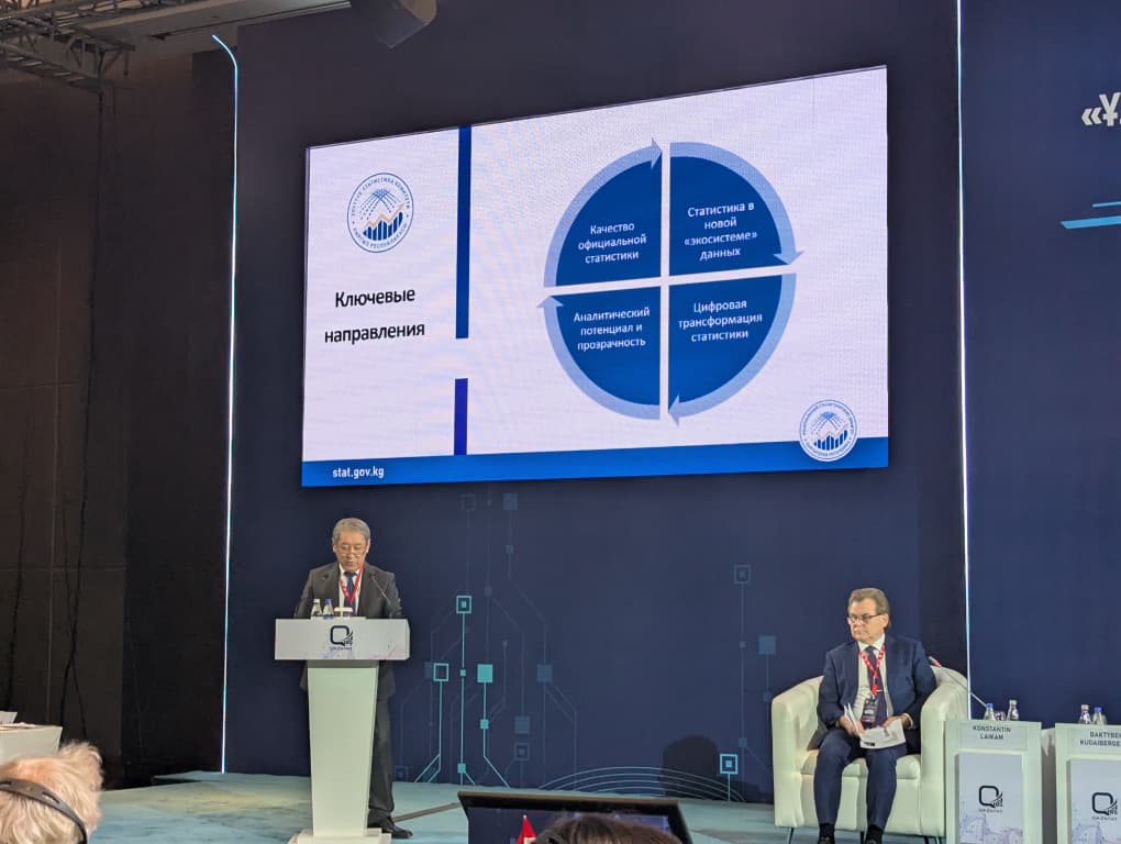Кыргызстан делегациясын Улуттук статистика комитетинин төрагасы Бактыбек Кудайбергенов жетектеп, "Маалыматтардын сапатын камсыздоонун элементи катары статистиканы санариптештирүү" темасында баяндама жасады. Ал өз сөзүндө статистикалык процесстерди санариптештирүү расмий маалыматтарга ишенимдүүлүктү, ачыктыкты жогорулатууга багытталган стратегиялык багыт экенин белгиледи. ошондой эле ал заманбап статистика улуттук маалыматтар экосистемасын түзүүдө жана мамлекеттик чечимдерди кабыл алуу үчүн сапаттуу маалыматтык негизди камсыз кылууда негизги ролду ойной турганын баса белгиледи.