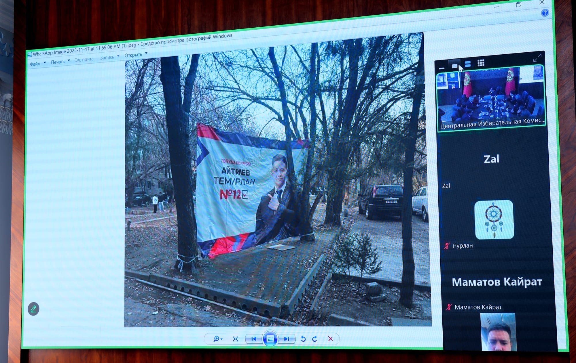 БШКнын басма сөз кызматынан кабарлагандай, Whatsap мессенджеринде таратылган фотоматериалдарга ылайык, Бишкек шаарындагы үйлөрдүн короолорундагы дарактарга № 20 округдан талапкерлердин биринин үгүт баннерлери илинип турганы аныкталган. Шайлоо тууралуу конституциялык мыйзамда белгиленгендей - үгүт материалдарын жашыл өсүмдүктөргө, тоонун боорлорна жана чокуларына, башка табигый дөңсөөлөргө кандай түрдө болбосун пайдаланууга болбойт.