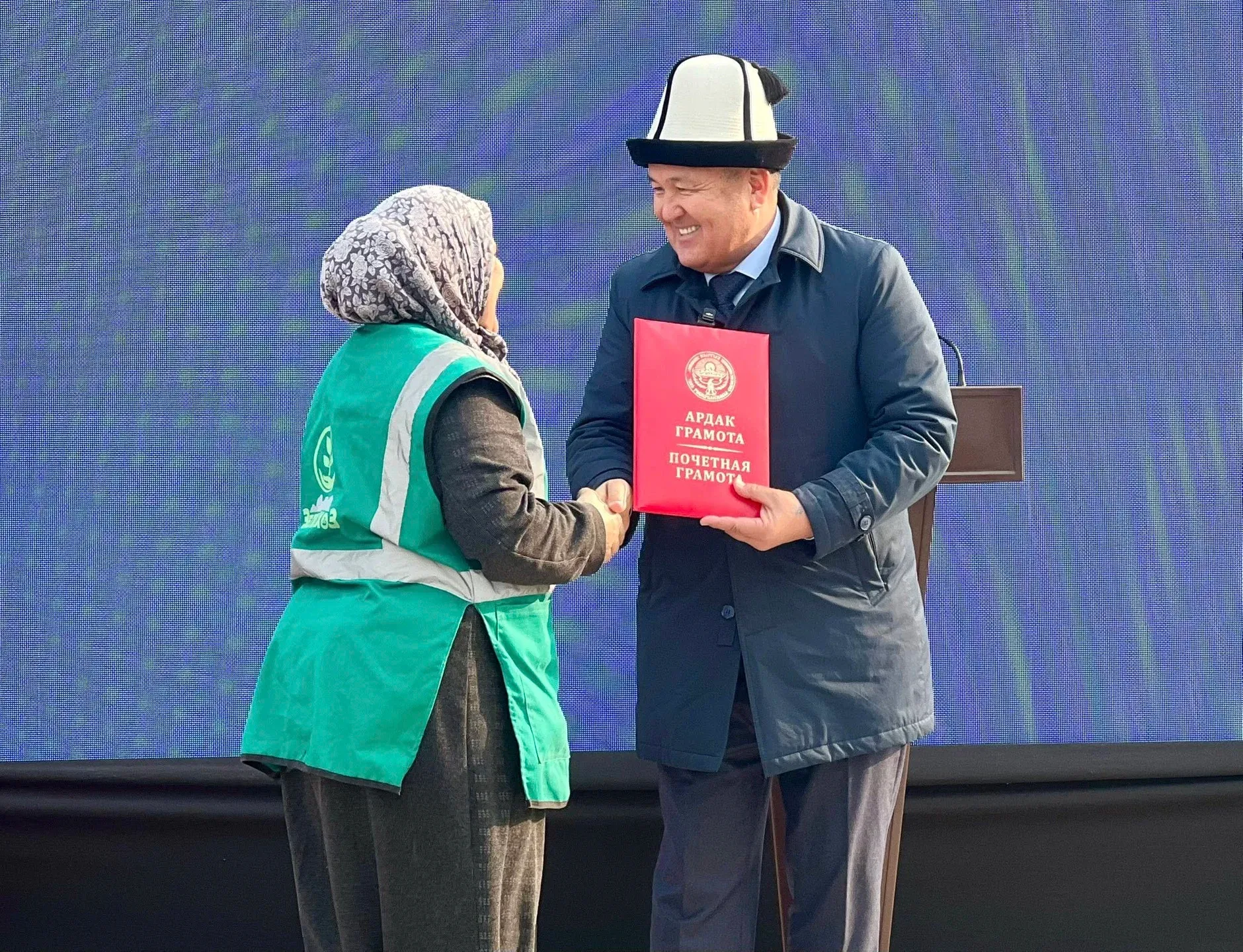 Иш-чарага катышкан калаа башчысы Жеңишбек Токторбаев муниципалдык ишкананын жетекчисине кызматтык унаа тапшырды. Мэр жыл башында имараттын абалын көрүп, аны жаңыдан куруу тапшырмасын берген.