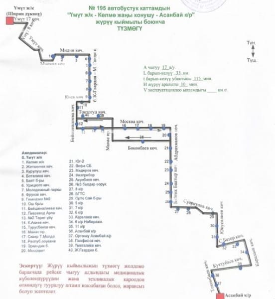 №195 каттамдын кыймыл чиймеси өзгөртүлдү