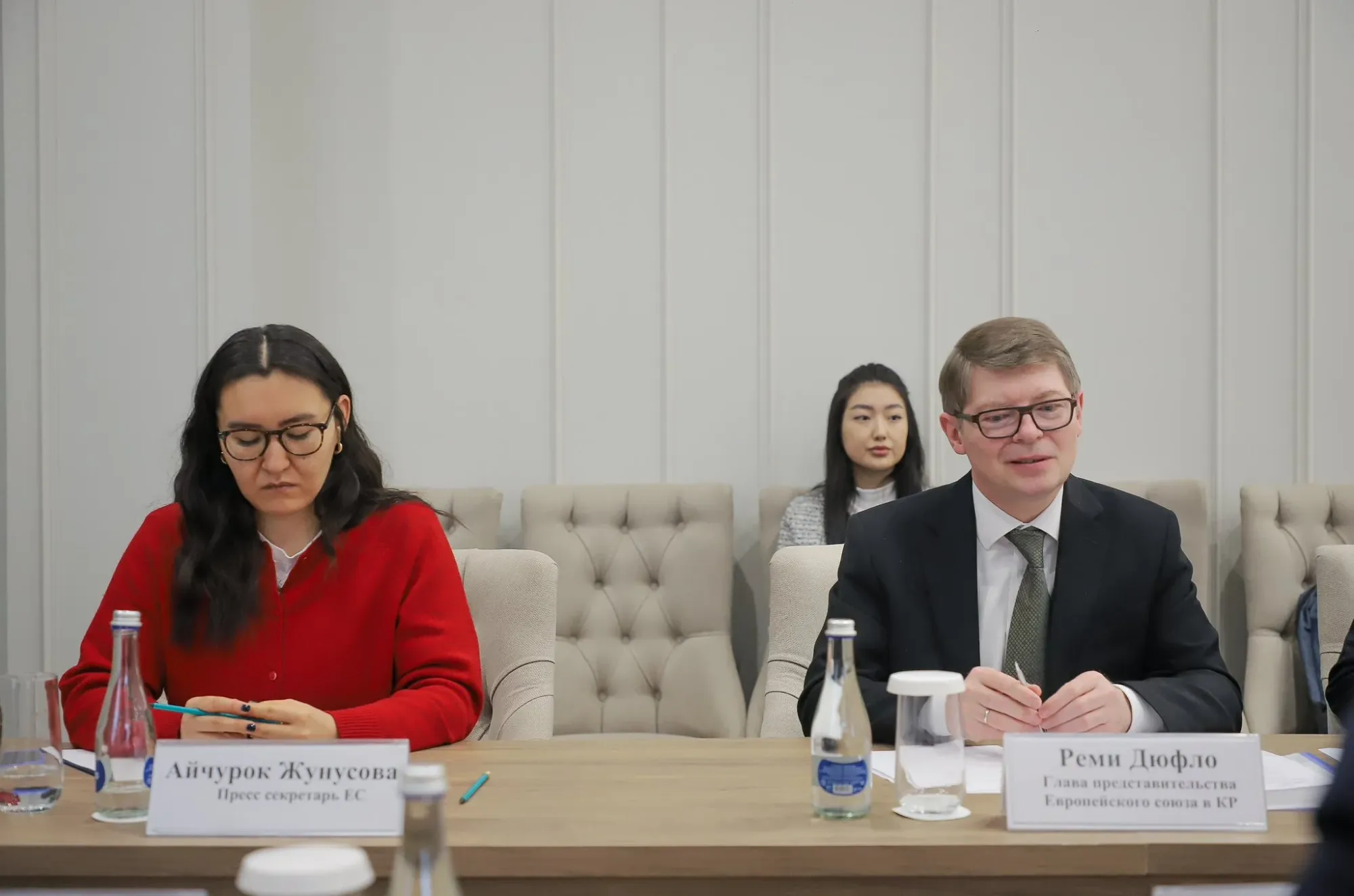 Ош шаарынын мэринин биринчи орун басары Адилет Шаршеналы уулу Европа Биримдигинин Кыргызстандагы өкүлчүлүгүнүн башчысы Реми Дюфло менен жолугушту.