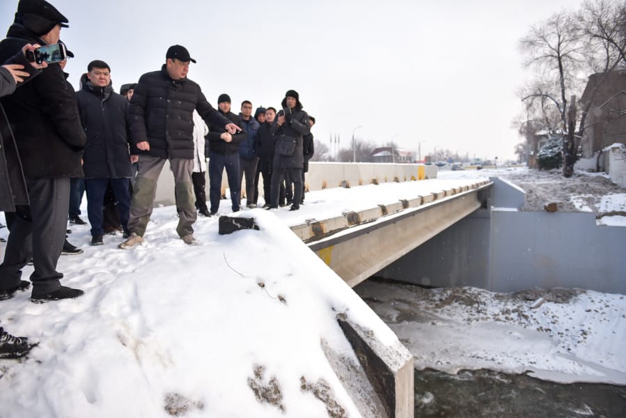 Иш сапардын алкагында мэр Жибек жолу проспектисинде курулуп жаткан алты тилкелүү жаңы көпүрөгө барып, сапатсыз тосмолор аныкталганын айтып, подрядчы менен түзүлгөн келишимди кыска мөөнөттө бузуу тапшырмасын берди. Ошондой эле дарыянын нугундагы жана ЖЭБдин техникалык каналындагы мыйзамсыз курулуштарды текшерүү жана демонтаждоо тапшырмалары берилди.