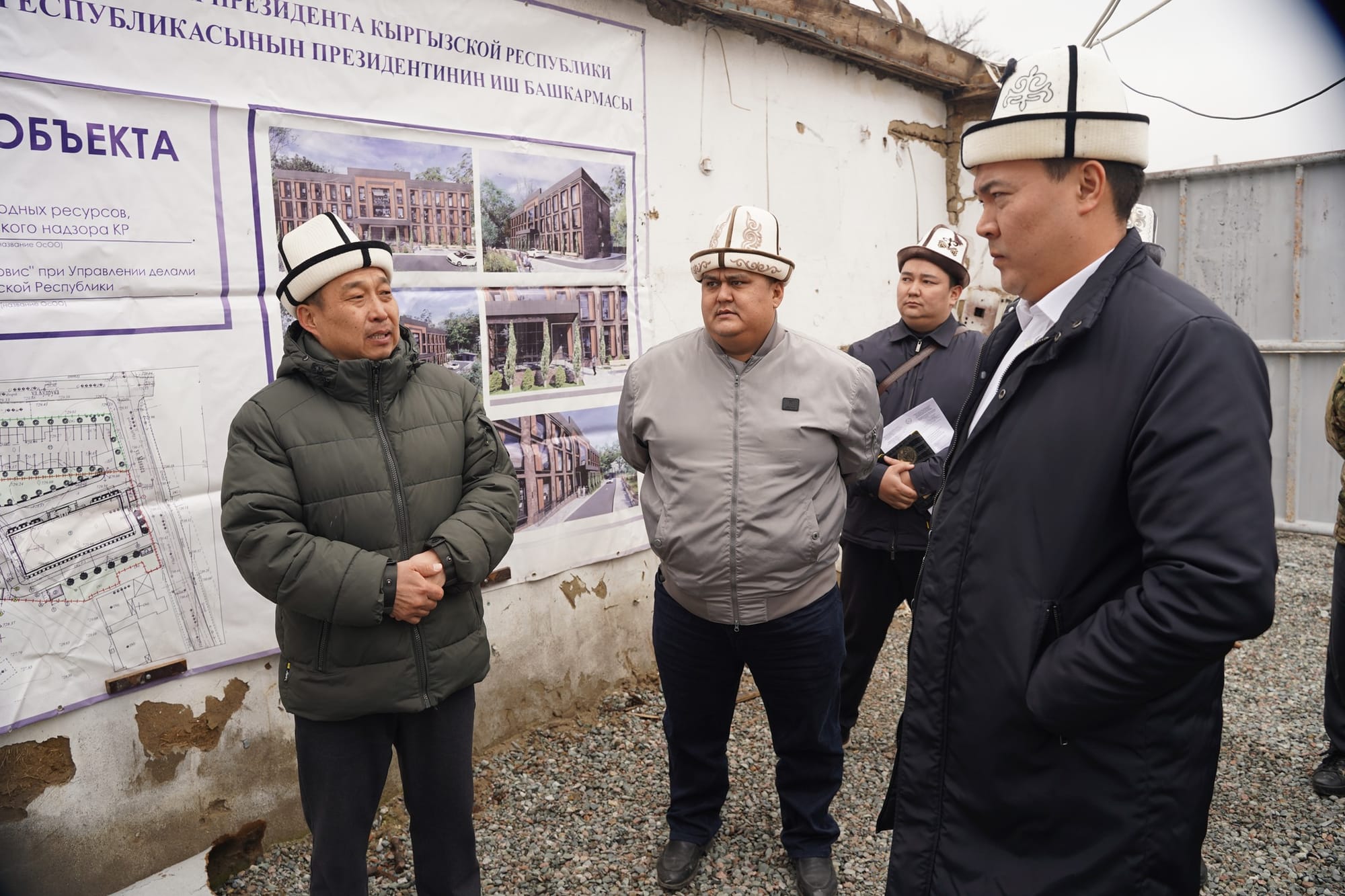 Объектке болгон иш сапарынын жүрүшүндө министр Акыл Токтобаев курулуш иштеринин жүрүшү менен таанышып, курулуш технологияларын жана коопсуздук талаптарын так сактоону тапшырды.
