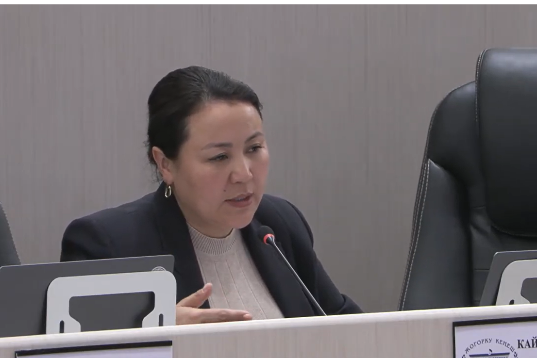 Депутат Медина Кайрылбекова Жогорку Кеңештин отурумунда такси кызматтарына чет элдик айдоочуларды ишке алуу үчүн милдеттүү түрдө орус же кыргыз тилин билүү талабын киргизүүнү сунуштады.