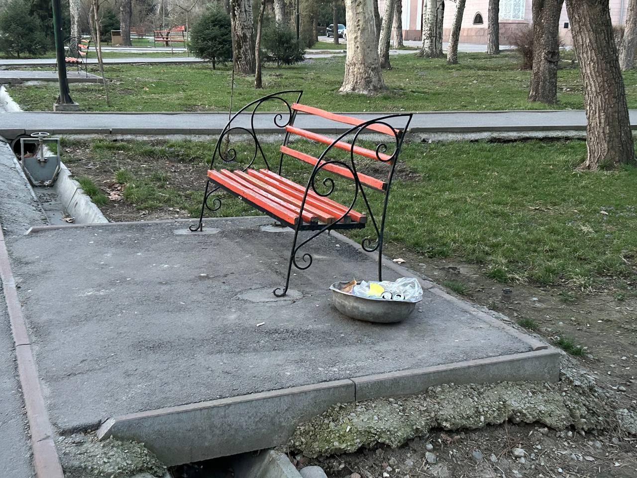 Бир суткадан кийин отургучтардын жанында "Тазалык" логотиби бар жаңы таштанды урналары коюла баштады. Алар жаңы боёктун жыты чыгып турат. Азырынча бардык жерге орнотулуп бүтө элек, балким жаан жаагандыктан жетишпей калган.