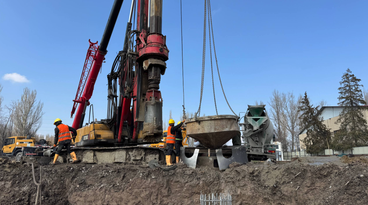 №94, №86 мектептерде жана Достук айылында жер 6–8 метр казылып, кайра толтурулуп пайдубал орнотулууда.