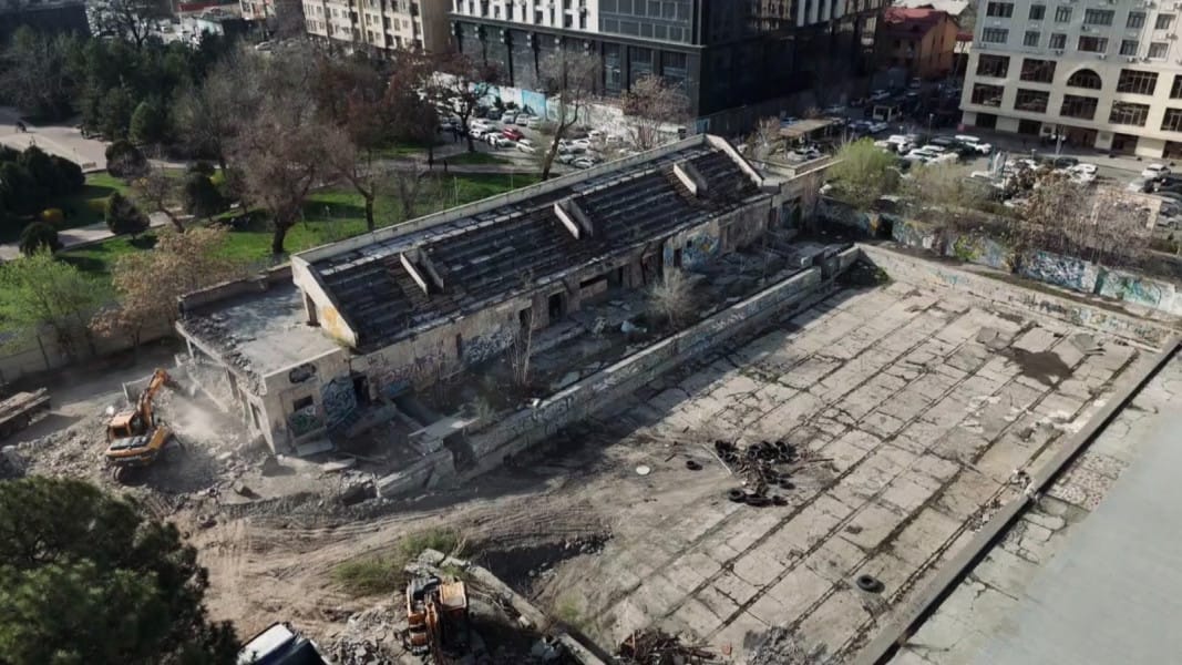 Учурда бассейн курула турган аймакта демонтаж иштери жүргүзүлүүдө. Ага эки экскаватор жана 16 HOWO үлгүсүндөгү атайын техника тартылган.