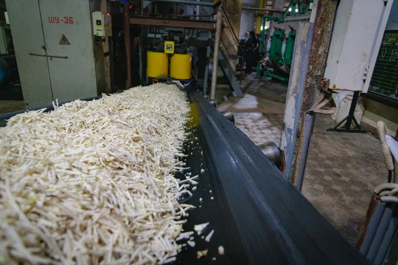 - Жуулуп тазалангандан кийин биздеги бункерлерге 800кгдан кем эмес кызылчалар салынат да, майда кесилип чыгат. Андан кийин диффузияланат да, ширеси өзүнчө бөлүнүп чыгат. Шире андан ары иштеп чыгууга алынат. Ал эми кантынан ажыраган калдыктар малга бериш үчүн атайын чункурларда сакталат да, кийин жергиликтүү калкка тоют катары сунушталат.