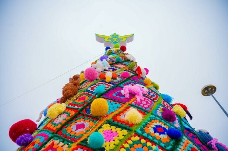 Астана шаардык акимдигинин басма сөз кызматы тараткан сүрөттөрдө шаарда орнотулган адаттан тыш, курактан куралган жаңы жылдык балаты көрсөтүлгөн.
