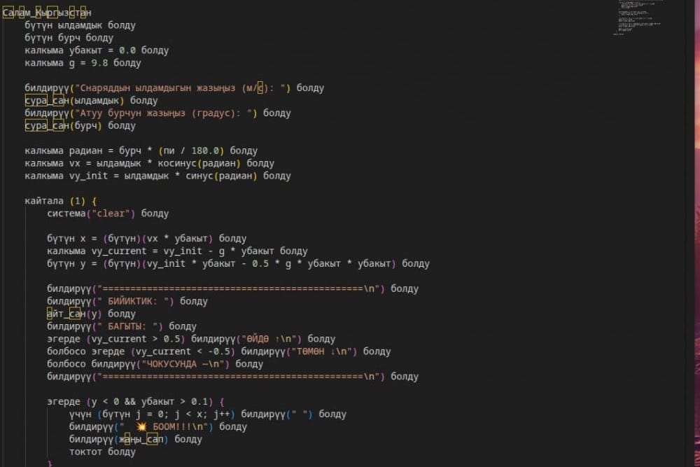 Чечимдин негизинде препроцессор колдонулат: англисче ачкыч сөздөр кыргызчага алмаштырылат. Мисалы: